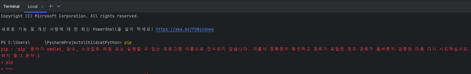 이후 PyCharm 커맨드 환경에서 pip를 입력했을 때, pip에 대한 명령어가 출력되면 정상 등록 된 것이다.